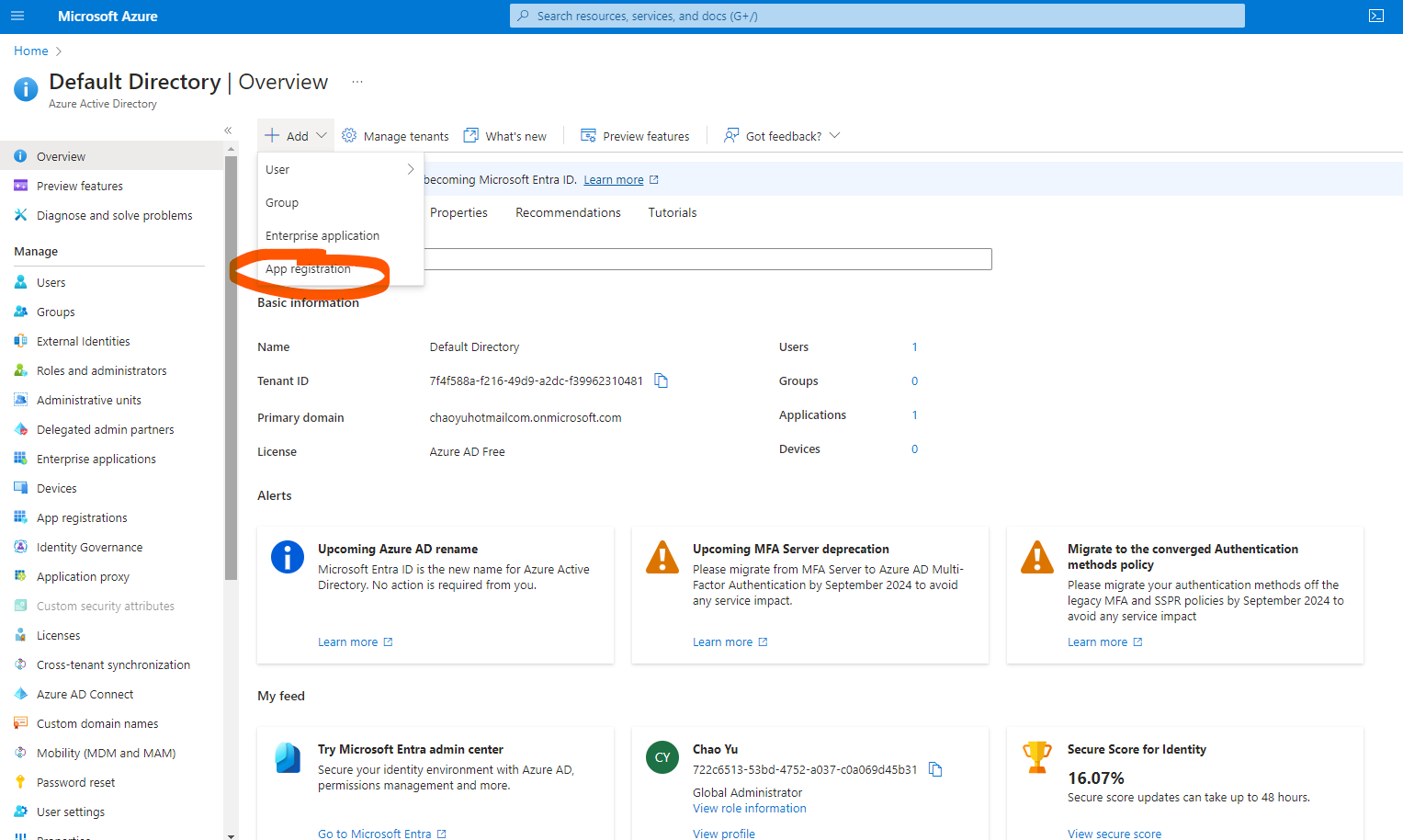 For Microsoft, we need to go to Microsoft Azure and create Azure Active Directory -> Add -> App registration