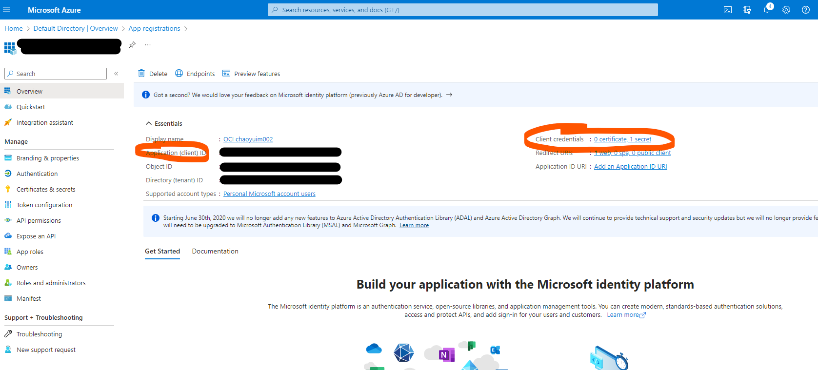 - Client ID, client id can be found in overview -> Application (client) ID