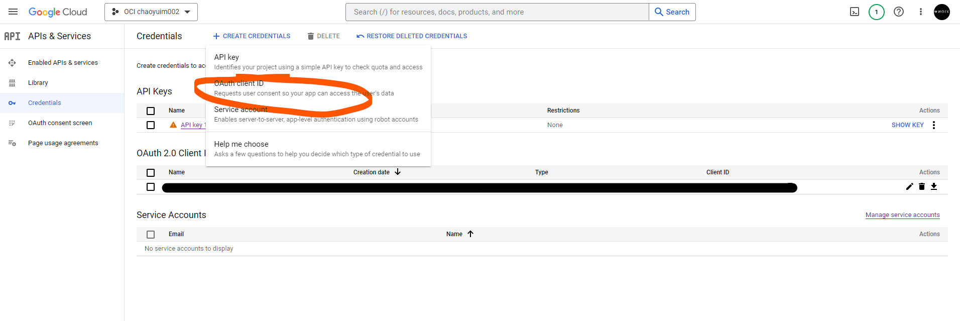 there we click on Create Credentials -> OAuth Client ID