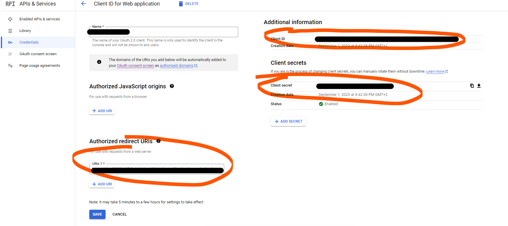 To get them, we need to go to google console and create / or reuse an exisiting project and click on APIs & Services -> Credentials -> OAuth2.0 Client IDs