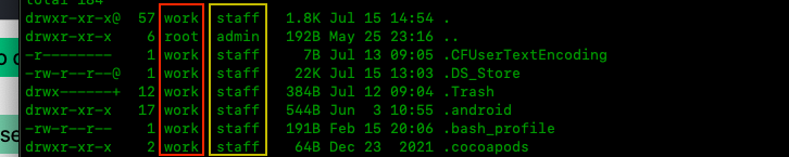 sudo chown work:root /folder