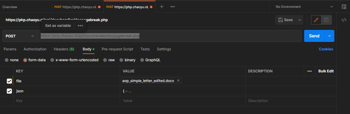 if (isset($_FILES['file']) && isset($_POST['json'])) {